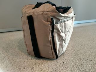 Trasportino in Eva (Etilene Vinil Acetato) per cani di piccola taglia. Marca Ferplast modello With-me small, usata una volta. Impermeabile e lavabile con acqua e sapone neutro. Cinghietta di sicurezza interna e manici regolabili. Colore verde acido. Portata massima: 5 Kg Misure: 14 x 35 x h 22 cm