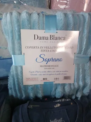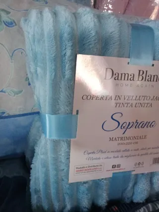 Coperta Dama Blanca modello Soprano, misura matrimoniale. Realizzata in velluto jacquard, a tinta unita e molto morbida, ideale per riscaldarsi, morbido e setoso tanto da migliorare la qualità del sonno, ottima anche come idea regalo sicuramente apprezzata! Bellissimo anche da mettere in un angolo sul divano 😍 - Dimensioni: 200x220 cm. - Tessuto in velluto jacquard.