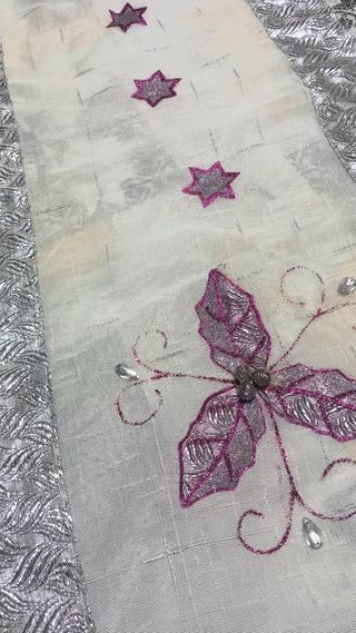 Bellissimo fiocco decorativo, perfetto per aggiungere un tocco di eleganza. Lunghezza circa 60 cm Misura fiocco circa 42 cm - Realizzato in tessuto di velluto e raso. - Dettagli floreali e perline. - Ideale per decorazioni. - Colore verde e bianco.