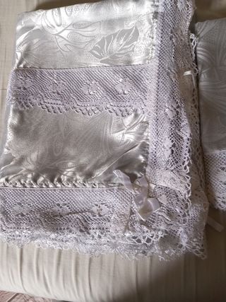 Copriletto matrimoniale in raso ricamo