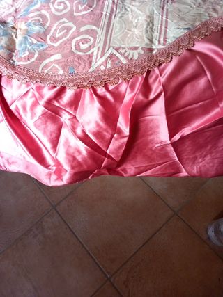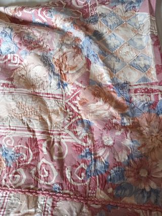 Bellissimo copriletto matrimoniale in tessuto e raso, dai colori tenui e delicati. Perfetto per aggiungere un tocco di romanticismo alla tua camera da letto. - Motivo floreale - Rifiniture in pizzo - Misure: matrimoniale