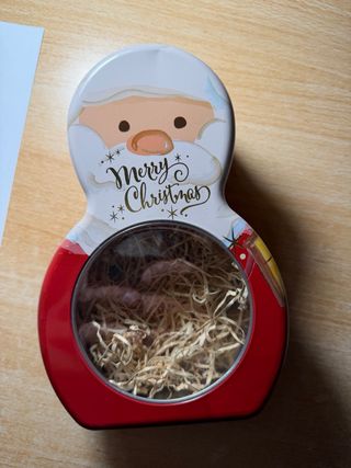 Scatola acciaio Babbo Natale con finestra ideale per riempirla di cioccolate o altro e fare regali natalizi