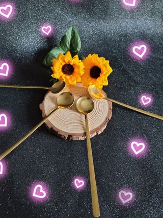 Bellissimo set di 4 cucchiaini dai colori cangianti. Ideali per tè, caffè o dessert. - I cucchiaini presentano manici lunghi e sottili. - Ogni cucchiaino ha un'estremità a forma di fiore o cuore. - Perfetti per aggiungere un tocco di colore alla tua tavola.