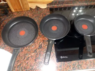 Set di padelle Tefal, nuove e mai usate. Sono state un regalo e non le gradisce, il prezzo originale era di 110, le offro a 80. Colore nero. Realizzate in metallo.