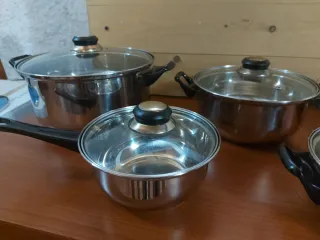 Set di quattro pentole in acciaio inossidabile 18/10 molto robuste e in ottime condizioni