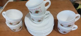 Arcopal Spain. Vintage. 6 Mai usate. altre 2 con piattino a richiesta. Scatola danneggiata dal tempo.