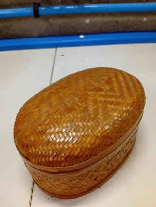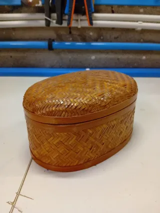 Elegante cestino portagioie realizzato in legno intrecciato. Perfetto per conservare i tuoi gioielli. - Materiale: legno - Design: intrecciato - Forma: ovale Vendo per sgombero negozio mobili