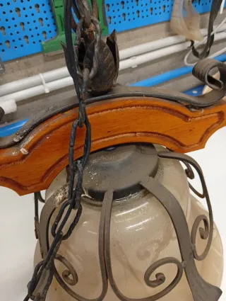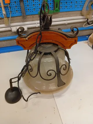 Lampadario ferro battuto e legno