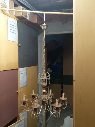 Lampadario in stile vintage, risalente agli anni '70. Un pezzo d'arredo che aggiunge un tocco di classe. - Struttura in metallo finitura oro. - Design a più bracci con candele decorative. - Sfera centrale decorativa. Spedizione in cassa di legno ha dei segni per l' usura prezzo trattabile