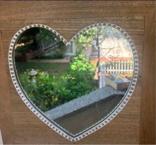 Specchio quadrato shabby chic di legno a forma di cuore profilato di bianco