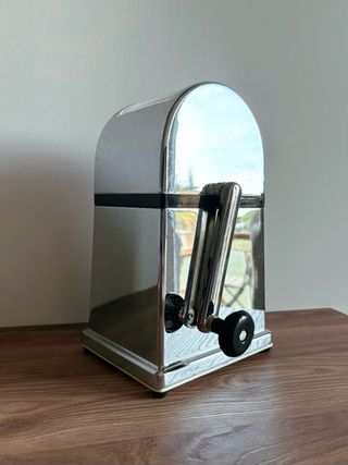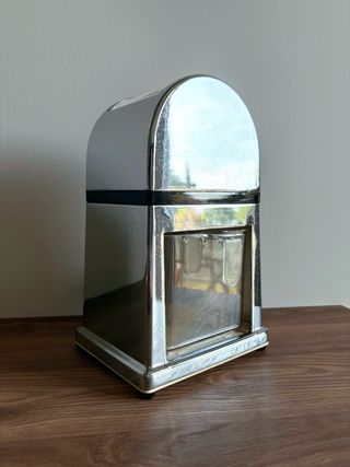 Tritaghiaccio manuale in acciaio inox con vaschetta di raccolta per la preparazione di granite, cocktail e piatti a base di pesce crudo. Ideale sia per uso professionale che casalingo. Dimensioni: 26x15x11 cm. Perfettamente funzionante, presenta solo qualche piccolo graffio come visibile in foto.