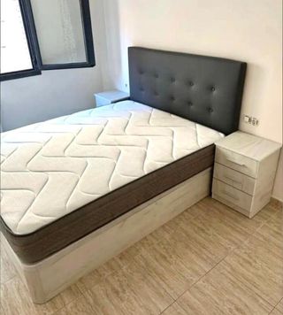 OFFERTA COMPLETA DI LETTI COMPLETI! Abbiamo materassi da 21 cm a 30 cm di spessore, viscolatex, memory foam, molle e lattice, un materasso che si adatta completamente al corpo. Tartina in legno con base rivestita in tessuto 3D traspirante, con un'altezza di 33 cm e grande capacità interna in diversi colori: BIANCO, CILIEGIA, WENGUE, CAMBRIAN E ARCTIC. Abbiamo tutte le dimensioni: 90x190 105x190 120x190 135x180/190 150x190 150x200 160x200 180x200 -Disponiamo di servizio di montaggio e trasporto a domicilio IN CONTRASSEGNO