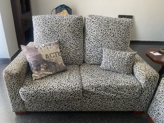Sono 2 divani a due posti ciascuno dal design moderno e sorprendente. I suoi cuscini sono comodi e il rivestimento dona un tocco unico a qualsiasi stanza. - Rivestimento in tessuto con stampa astratta. - Include due cuscini decorativi.