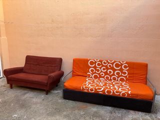 Divano rosso a due posti dal design classico e confortevole che misura 1,48x68x80. Divano letto con rivestimento arancione 1,83x80x80.