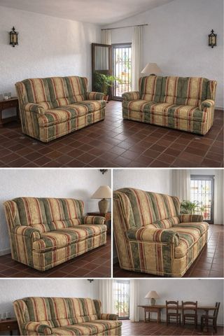 In vendita due divani abbinati, stile classico, molto comodi e in buone condizioni generali. ✔️ Struttura solida e stabile ✔️ Sedili ampi e schienale alto, molto confortevoli ✔️ Rivestimento resistente, senza rotture ✔️ Ideali per soggiorno ampio, casa al mare, seconda casa o progetto di ristrutturazione I divani sono stati utilizzati normalmente, presentano segni estetici tipici del tempo, ma sono perfettamente utilizzabili e molto comodi. Si vendono preferibilmente insieme, anche se si può valutare la vendita separata. Ritiro a mano (non spediti per volume)