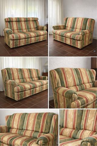 Divani a 3 e 2 posti, rivestiti in tessuto a righe