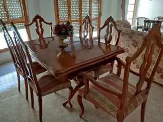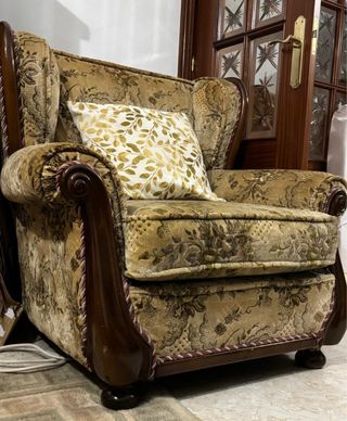 Vendo set di divano a 3 posti e due poltrone a 1 posto, molto ben conservato, senza rotture. - Rivestimento in velluto con stampa floreale. - Struttura in legno intagliato. Prezzo per il set completo: 450€. Si accettano offerte ragionevoli e la possibilità di vendere poltrone separatamente. # Stile Luigi XV, Rococò, Vittoriano, classico, collezionismo, ingresso, matrimoni, tenute... Saloni classici, spazi vintage.