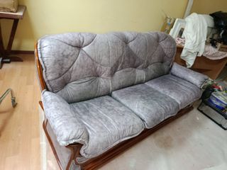 Divano e 2 poltrone classici in legno e tessuto