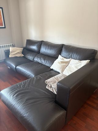 Divano chaise longue in vera pelle di colore marrone. C'è un cuscino scucitura ma può essere riparato. Ci sono aree nella pelle usurate ma possono essere nutrite con prodotti specifici per la pelle. Molto comodo e sedili estraibili. Strutturalmente in perfette condizioni. Ritiro a domicilio. Misure: 2,87 metri di lunghezza x 1,80 metri di profondità.