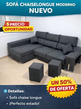 Divano chaise longue moderno NUOVO, SENZA IVA LIQUIDAZIONE!!! Divano modulare in tessuto color grigio scuro. Molto ampio e super comodo. Ideale per famiglie o per chi vuole un soggiorno moderno e accogliente. - Include 2 putt abbinati - Design attuale ed elegante - Stato perfetto - Pronto per l'uso 349€, BEIGE / GRIS CLARO / GRIS OSCURO / NEUTRO 🚚 SPEDIZIONE ESPRESSA 24 h CATALUNYA, oggi o domani lo ricevi!!!!