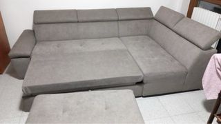 Divano chaiselongue nuovo disponibile per liquidazione puntuale. • Assidi scorrevoli • Schienale reclinabile • Cassetto interno nella chaise • Include 2 pouf Colori: beige, grigio chiaro e grigio scuro. Orientamento destra o sinistra. 🚚 Consegna rapida in 24 ore (penisola) 🔧 Montaggio incluso 💳 Pagamento alla consegna 🛡 3 anni di garanzia 📩 Scrivimi per confermare la disponibilità.