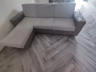 Divano angolare in tessuto, perfetto per arredare il tuo soggiorno. 240 x180 - Colore beige/grigio. - Struttura in legno. Uno dei ganci della penisola è rotto ma rimane attaccata lo stesso o comunque si puo cambiare . Il prezzo è a malincuore perché me ne devo liberare causa cambio divano