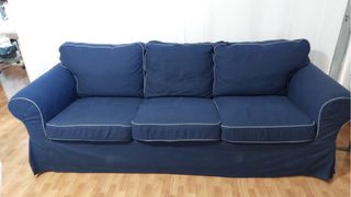 Divano a tre posti modello EKTORP di Ikea. Il suo design classico e confortevole lo rende ideale per qualsiasi soggiorno. - Fodera in tessuto. - Colore blu.