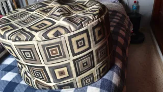 Bellissimo puff in stile retrò, ideale per aggiungere un tocco vintage alla tua casa. È un pezzo unico con un design accattivante. - Rivestimento in pelle sintetica di alta qualità. - Ha un design geometrico con dettagli incisi. - Combina due tonalità di marrone e nero.