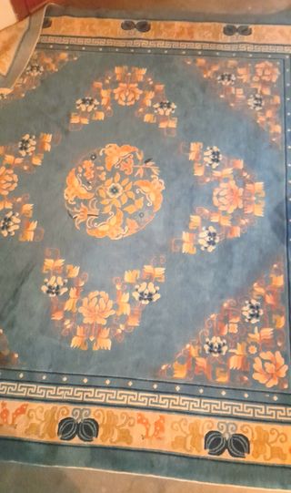 Tappeto tipo persiano colori azzurro e marrone ...buon spessore..in buono stato ..dimensioni circa 200cm per 200cm..in vendita causa trasloco
