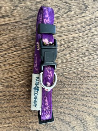 Collare per animali cani piccoli o gatti con un grazioso motivo floreale. - Chiusura a scatto in plastica nera. - Anello in metallo per aggancio. - Etichetta con logo Farm Company cucita.