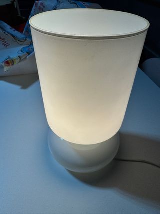 Lampada da tavolo LYKTA di IKEA. Design moderno e minimalista, perfetta per illuminare ogni ambiente. - Base sferica in vetro. - Diffusore cilindrico in vetro. - Stile contemporaneo.