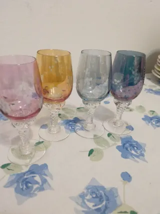 Set 4 Calici Liquore Vetro Colorato Vintage