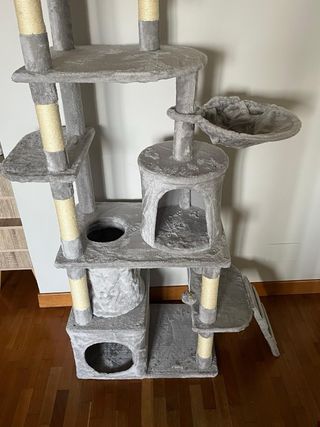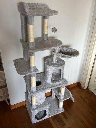 Questo tiragraffi a forma di castello è un'ottima aggiunta per il tuo gatto. È alto 1.70 metri e offre diverse piattaforme e nascondigli. - Struttura a più livelli. - Diverse aree per arrampicarsi e riposare. - Include una pallina gioco appesa.
