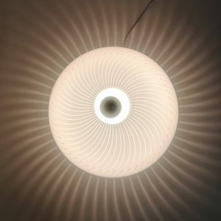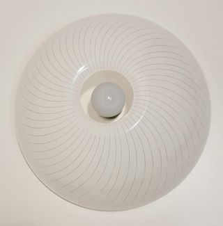 Lampada a soffitto o parete a luce diffusa. Stile Space Age. Prodotta da Meblo, ex Jugoslavia, per iGuzzini. Diffusore in metacrilato bianco con righe trasparenti. Le strisce forniscono belle sfumature quando sono accese. Struttura in alluminio verniciato bianco. Misure: Ø45x22cm Lampadina: E27 HALO o LED - Quattro disponibili - Ottime condizioni Vintage. Mid-century, Danese, Cassina, Artemide, Kartell, Scarpa Castiglioni, Stark, Bellini, Magistretti, Vintage.