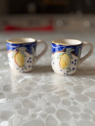Set di due tazzine da caffè dipinte a mano con decoro limoni Set due tazzine da caffè in ceramica dipinte a mano, ceramiche di Amalfi, mai utilizzate