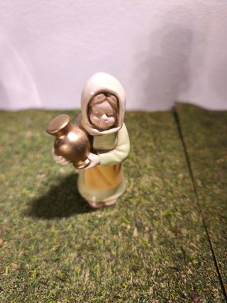 Delizioso personaggio per presepe Egan, realizzato in ceramica. - Dettagli in oro. - Tonalità beige. - PERFETTO - IMBALLO ORIGINALE