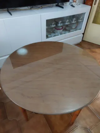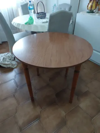 Elegante tavolo rotondo in legno con un design classico. - Gambe in legno robuste. - Superficie liscia e spaziosa. Si allarga.