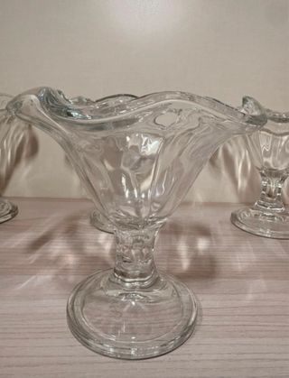 Set di eleganti coppe per dessert Bormioli Rocco. - Realizzate in vetro trasparente. - Design classico con bordo ondulato. - Ideali per gelati, macedonie e altre prelibatezze.