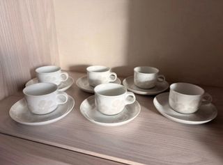 Elegante set di sei tazzine da caffè in porcellana Hutschenreuther, con un delicato motivo floreale. - Design raffinato con decorazioni floreali. - Materiale: porcellana di alta qualità.