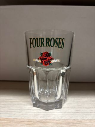 Bicchiere con logo Four Roses, ideale per degustare bourbon. - Design trasparente con dettagli verdi. - Logo Four Roses e ESTD 1888 con decorazione floreale. - Base sagomata per una presa stabile.