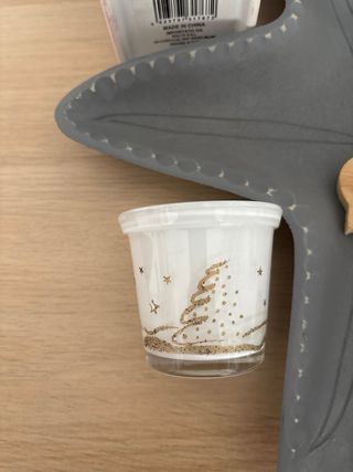 Candela con un design unico che raffigura un villaggio invernale. Il coperchio dorato aggiunge un tocco di eleganza. - Decorazione con paesaggio innevato e casette. - Dettagli di alberi e persone che pattinano. - Coperchio in metallo color oro.