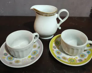 Elegante set di 2 tazzine da caffè in porcellana con piattini abbinati. Il design floreale aggiunge un tocco di colore e allegria alla tua pausa caffè. - 2 tazzine da caffè - 2i piattini coordinati - Motivo floreale multicolore - lattiera in porcellana