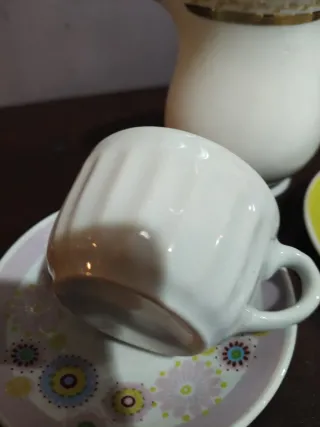 Set 6 tazzoni con sottotazza biscottiera e teiera