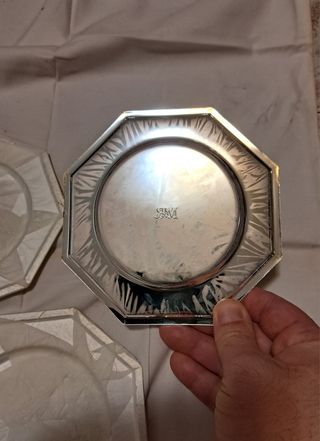 Set di 5 sottocaraffe/bottiglie e 17 sottobicchieri. Sono vecchissimi, vanno lucidati/puliti a discrezione dell' acquirente.