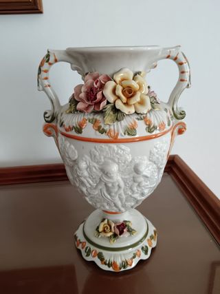 Vaso ceramica di Bassano decorato a mano con motivi floreali misure H.33 L.23 P.20 misure pacco H.42 P.32 L.34 peso kg2.200
