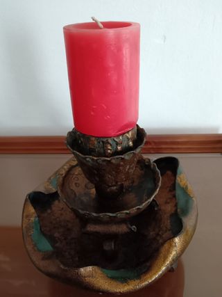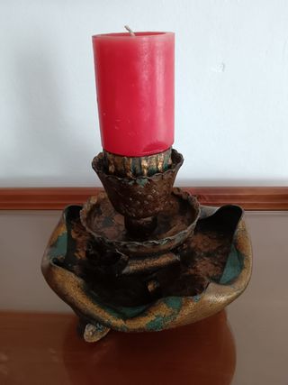 Portacandele artigianale tutto in ferro battuto a mano dorato perfetto dei genitori misure H.22 P.30 L.30 misure pacco H.25 K.37 P.33 peso kg 5.500