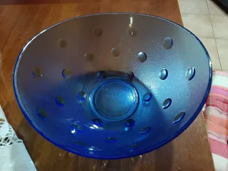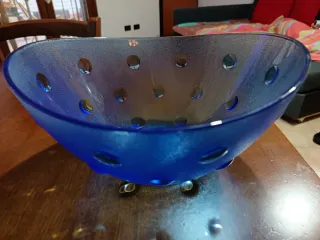Elegante fruttiera in vetro, un pezzo unico Made in Italy. Prodotto italiano dei maestri vetrai di Borgonovo Valditaro Parma. Ha una forma leggermente ellittica. Si può usare anche come insalatiera o anche x dolci tipo mascarpone... Tanti usi. In ottime condizioni. Misure in foto