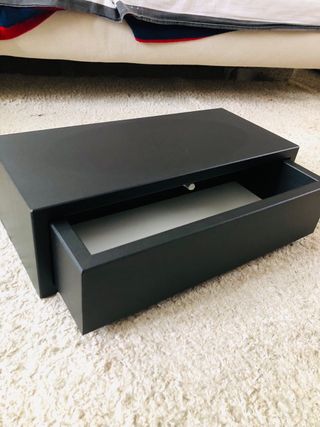 Mensola da parete dal design moderno, perfetta per aggiungere un tocco di stile e funzionalità. Tasselli a scomparsa non inclusi. ottime condizioni. - Cassetto estraibile per riporre oggetti. - Finitura opaca elegante. Misura 44x20x14 cm