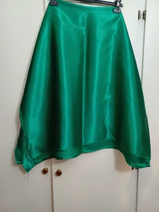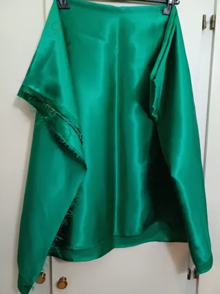 Tessuto in raso di colore verde brillante, ideale per creazioni sartoriali. - Materiale liscio e lucido. - Trama fluida.
