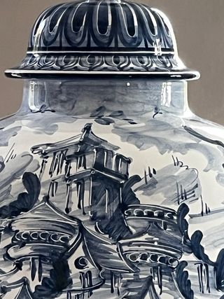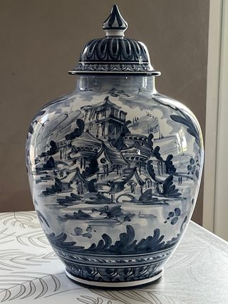 Vaso Ceramiche Albissola. T2L Albissola dipinto a mano Ima Pezzo unico fatto a mano, bianco e blu, con doppio disegno e completo di tappo, tutto in perfette condizioni.